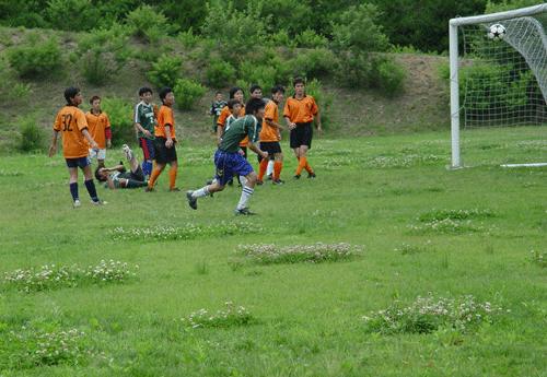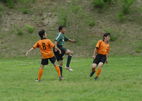 ヘディングシュート惜しくもバーの上