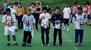 試合前半はユラノスの優位な展開で、後半に入ってもユラノスペースだつたが試合終了間際に同点に追いつき、延長に突入。開始1分翼クラブが先制し、ついにはじめてのリードを奪う。人数の多い翼クラブ有利かと思われたが、すぐにユラノスが同点に追いつき、延長後半ユラノスが逆転し、終了際に追加点を奪い勝利を決定づけました。両チームとも個々のレベルが高くそこらの現役チームにも劣らないハイレベルな戦いでした。 |